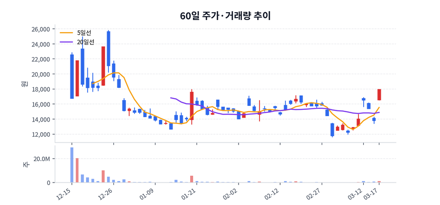 최근 가격 범위는 11,600원에서 25,850원 사이였고, 종가 기준 변동성이 적지 않았던 구간이다.