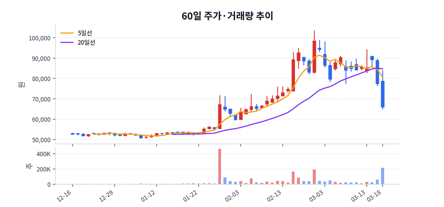 최근 가격 범위는 50,500원에서 103,700원 사이였고, 종가 기준 변동성이 적지 않았던 구간이다.