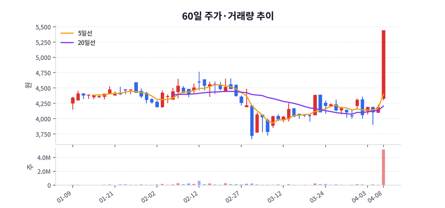 최근 가격 범위는 3,665원에서 5,440원 사이였고, 종가 기준 변동성이 적지 않았던 구간이다.