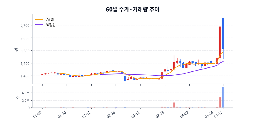 최근 가격 범위는 1,320원에서 2,320원 사이였고, 종가 기준 변동성이 적지 않았던 구간이다.