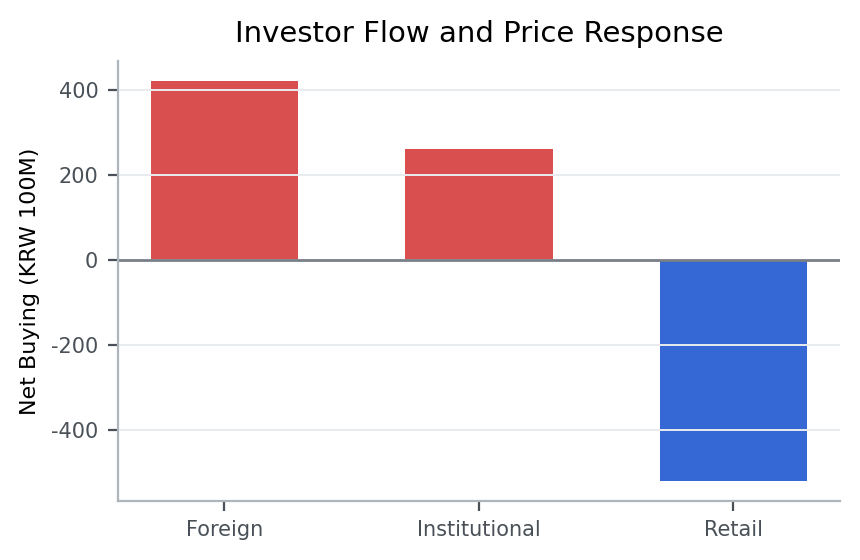 In markets where investor categories are visible, price alone is only part of the picture. Foreign buying, institutional buying, and retail participation can create very different conditions even when the stock ends up at the same closing price.
